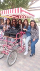 La primera parada del día fue en el Parque Europa de Torrejón de Ardoz, que alberga réplicas de diferentes monumentos europeos como la Torre Eiffel, la Fontana di Trevi o la Puerta de Alcalá. Algunos de los excursionistas se animaron a dar un paseo en cuadriciclo, en barca, e incluso a montarse en la tirolina que cruza el lago del Parque.