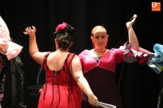 Durante el sábado las sevillanas albenses y las procedentes de otros pueblos como Peñaranda participaron en una ruta que les llevó al Figón La Perdiz, Kiries y también a la inauguración de Restaurante De la Santa. El festival, programado en un principio para celebrarse en la Plaza Mayor de Alba de Tormes, tuvo que trasladarse al teatro por la mala climatología que ha reinado todo el fin de semana.