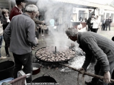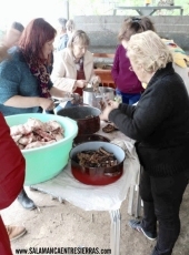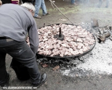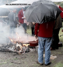 Y la mañana del domingo, ¡nada de dormir! Mujeres y hombres se reunieron temprano para los preparativos de la I Parrillada Popular de Valdehijaderos, que reunió en torno a las dos de la tarde a más de un centenar de comensales de nuevo en los Salones de las Antiguas Escuelas. Costilla, panceta, magro, chorizo? corrieron entre las mesas acompañados de ensalada, todo regado con buena sangría y vino de la zona. Mención aparte merecen los organizadores del evento, quienes al mal tiempo pusieron la mejor de las caras, y en especial los asadores, que tuvieron que batallar de tú a tú con la lluvia para que las delicias cárnicas llegasen puntualmente a la mesa. Bravo por todos ellos.