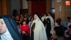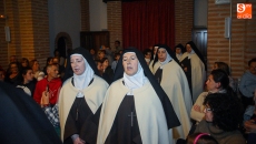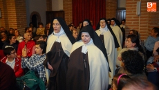 La Iglesia de Santiago ha acogido este viernes la representación teatral 'Teresa. La Jardinera de la Luz', a cargo del grupo Lazarillo de Tormes y en un homenaje a la grandeza de la obra teresiana. Teresa de Ávila suscita un interés que trasciende al tiempo y al espacio y que, gracias a la celebración del V Centenario de su nacimiento, resulta de gran actualidad. Este montaje teatral, fruto de la colaboración entre la ONCE y la Consejería de Cultura de la Junta está concebido para ser representado en iglesias, conventos y ermitas, escenarios ideales para que un grupo de monjas carmelitas, en los momentos previos a la muerte de Santa Teresa echen la vista atrás para reivindicar a su fundadora, repasar la vida y obra de la Madre de la Iglesia y cantar las canciones de la época, acompañadas al órgano del maestro Francisco Salinas, contemporáneo de la Santa y por ciento, ciego también.