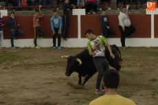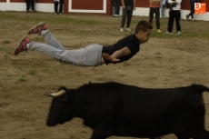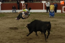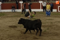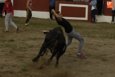 Concluido el encierro, se dio paso a la capea en la plaza. El público que llenó las gradas de la misma pudo disfrutar de numerosos recortes ?también los había habido durante el encierro- e incluso de saltos.