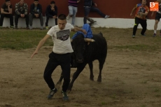 A media tarde se desarrollaron las actividades más esperadas del programa festivo: el encierro urbano y la capea, que contaron con tres novillos y dos vacas. La tarde estuvo repleta de varios sustos y momentos de peligro, teniendo lugar el primero de ellos antes incluso de comenzar los eventos.