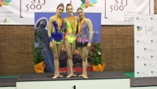 Tras la disputa, durante la jornada sabátina, de los aparatos de aro, pelota y cuerda, el pabellón abulense de San Antonio acogió este domingo la disciplina de mazas, donde Emma Romero fue segunda con 11.300 y Paola de Castro tercera con 11.083, solo superadas por la vasca Saioa Agirre (12.433).