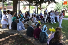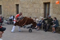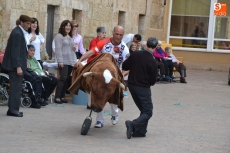 Llegada la hora de comer, los residentes disfrutaron de un menú especial, que dio paso a una animada sobremesa protagonizada por los integrantes del grupo Arte Charro, que llevaron hasta la Residencia sus carretones, ofreciendo unos divertidos encierro y capea. Como complemento, hubo también juegos en los que participaron los trabajadores del Centro.