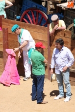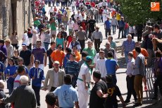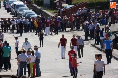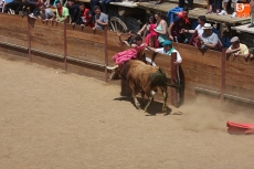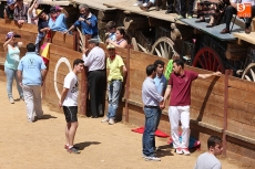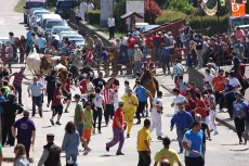 Los corredores aquí hicieron su trabajo ante la dificultad que para los caballos suponía llevar el último astado hasta el coso cerrado con 47 carros. Parado y más pendiente de lo que se acercaba por detrás que de continuar la carrera de camino a la histórica plaza sanfeliceña, varios de los corredores tiraron con envites del eral hasta que pisó el albero.