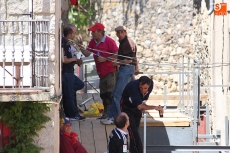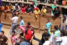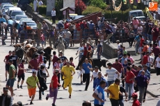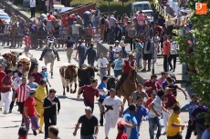 El primer grupo llegó a la plaza sin problemas, aunque no sin algún que otro susto para un jinete y varios corredores en la zona de la plaza del Noveno. Por el contrario, los dos novillos restantes se pararon en el recorrido causando momentos de incertidumbre, cuando no peligro. La tensión de estos instantes, unido a la complejidad que supone el manejo de las puertas para evitar que los astados regresen sobre sus pasos, se concretó en alguna que otra discusión entre jinetes y corredores, aunque sin mayores incidencias.