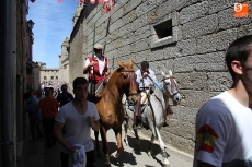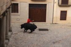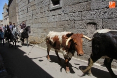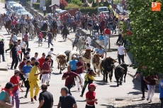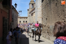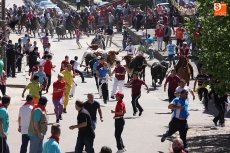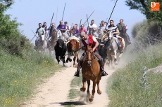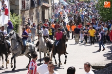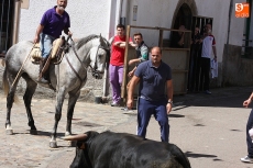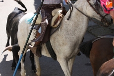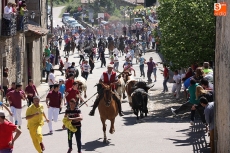 En el encierro a caballo se corrieron cinco novillos de la ganadería de José Tomás García 'Joseto', bien presentados y que sembraron de emoción las calles tras que la manada se partiera en dos grupos, el primero con tres erales y seis mansos, y el segundo con los dos novillos restantes de la camada y una decena de caballistas.