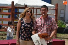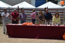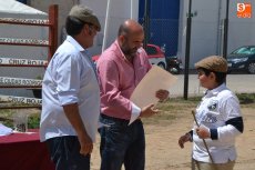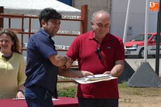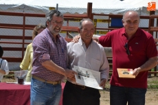 Como es habitual, en la recta final de la Feria tuvo lugar ?al aire libre, y bajo un intenso calor- la entrega de premios del certamen, a partir de las valoraciones del ganado expuesto realizadas por un jurado integrado por Isidoro Molinero Francisco, de la Unidad Veterinaria de Ciudad Rodrigo; y los ganaderos Heliodoro Sánchez Hernández y Francisco Manchado (Rosa Mª Pascual ejerció como secretaria, y el concejal de Ferias, Ignacio Hernández, como presidente).