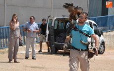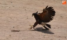 Concluida la entrega de premios, el poco público que quedaba en la Feria pudo disfrutar de la última exhibición de cetrería que se ha realizado en el marco del evento, a cargo de Atalaya Dúo.