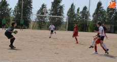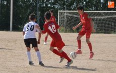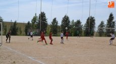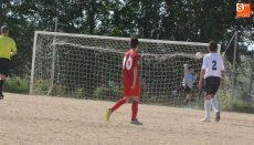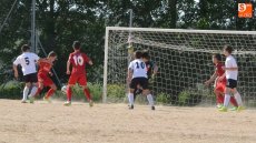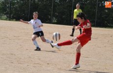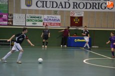 El Ciudad Rodrigo ?que tenía las bajas de Claudia y Delgado- empezó el encuentro disponiendo de numerosas ocasiones, de la mano de Carlos (le sacaron un remate bajo palos), Carmen e Iglesias, mientras que los locales no conseguían llegar (apenas tuvieron un remate claro en todo el primer tiempo: un remate al larguero en la recta final).