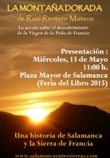 Las presentaciones de libros serán, una vez más, otro de los atractivos de la Feria- Se presentarán diecinueve títulos, entre ellos, LA MONTAÑA DORADA, la novela de Raúl Rentero Mateos sobre la historia y leyenda del descubrimiento de la Virgen de la Peña de Francia. Será el próximo miércoles 13 de mayo a las 11:00 h. en la carpa de presentaciones de la Plaza Mayor salmantina.