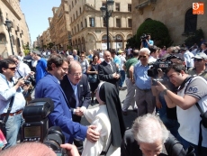 "Sí, hemos adoptado medidas duras, difíciles y que sabemos que van a desgastar", pero "era nuestra obligación, un ejercicio de patriotismo", frente a los que "no lo hicieron eludiendo sus responsabilidades" y frente a las nuevas formaciones políticas, a las que denominó "marcas blancas", que "ahora vienen a darnos lecciones". Son las palabras de Juan Vicente Herrera, candidato del PP a la Presidencia de la Junta de Castilla y León, durante su visita este martes a la capital salmantina, acompañado del presidente provincial del Partido, Javier Iglesias; la cabeza de lista a Las Cortes, María Josefa García Cirac; el candidato al Ayuntamiento, Alfonso Fernández Mañueco, y candidatos de los municipios del alfoz y de otros puntos de la provincia como Guijuelo.