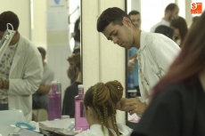 Con el lógico nerviosismo y la emoción del momento, comenzaron preparando el cabello de sus modelos para, posteriormente, elaborar los diferentes peinados con la premisa de hacer un recogido actual. Entre tanto, se han acercado al Centro un grupo de profesionales del sector para valorar los trabajos; hemos contado con la inestimable presencia de: Fran, antiguo alumno y estilista de la peluquería "Eduardo y Beatriz" de Salamanca; Elena, antigua alumna y estilista y empresaria de la peluquería "Amiestilo" de Salamanca; José Andrés, antiguo alumno y estilista y empresario de la peluquería "Urban Look" de Peñaranda de Bracamonte; Nuria, antigua alumna en prácticas y colaboradora del Centro; Sebas, empresario de la comercial "Cosmética profesional" de Salamanca y Yolanda, empresaria de la peluquería de "Yolanda Juan" de Salamanca. Además del recogido, el jurado ha evaluado aspectos como la adecuación del adorno, el visagismo y la técnica empleada.