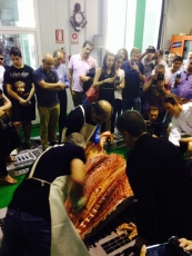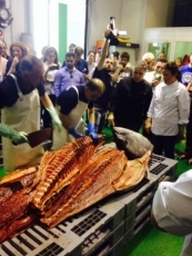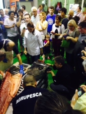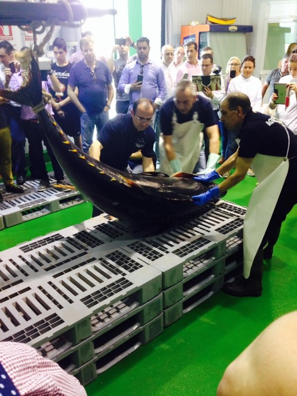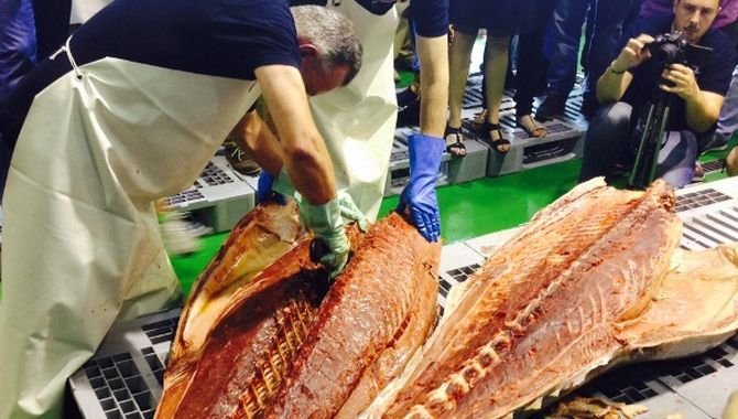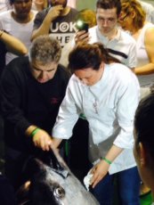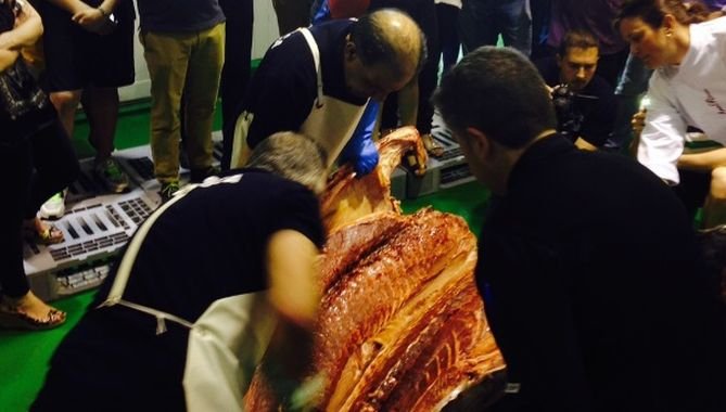 [Img #305778]El Centro de Innovación Gastronómica "Casa de la Tierra", en colaboración con la empresa salmantina Agrupesca, ha realizado una interesante demostración de ronqueo de atún rojo. Para esta exhibición se ha contado con un atún de almadraba de 171 kilogramos procedente de la levantada del viernes noche llegado apenas unas horas antes a Salamanca. La captura de esta pieza ha corrido a cargo a manos de la empresa gaditana Hermanos Garrido, vinculada a la pesca del atún en almadraba desde hace más de cien años.
