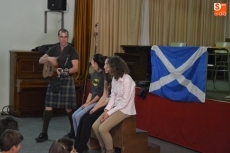En este sentido, David Vivanco, ataviado con el kilt (la tradicional falda escocesa), enseñó a los alumnos varios bailes y canciones de Escocia. El espectáculo estuvo impregnado de un muy buen ambiente.