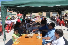 Después de la tradicional misa y procesión con el santo hasta las tierras que arropan el pueblo para proceder a su bendición, los cantalpineses se concentraron en la plaza de España para degustar una gigantesca paella.