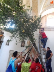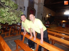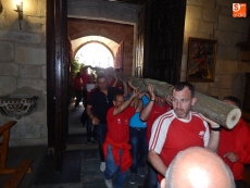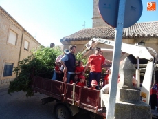 Las peñas, asociaciones y quintos de Villamayor han sido los protagonistas de la tradicional romería del ramo y posterior ofrenda a la Virgen Nuestra Señora de los Remedios. Una tradición que mantienen los vecinos y que anuncian los cohetes a media tarde. Es el momento de salir a por el ramo y, no sin alguna que otra dificultad salvada sin problemas, de acceder portándolo entre unas cuantas manos al interior de la iglesia para colocarlo, de pie, junto al altar, y con la talla de la Virgen situada justo debajo. Naranjas, limones y las cintas de los quintos adornan el ramo que las peñas de Los Berracos y Los Trompas han traído este sábado desde Valcuevo.