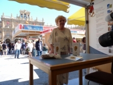Continuamos deleitándonos con las diversas actividades realizadas dentro del marco de la Feria de Libros de nuestra ciudad. Esta mañana, en el stand del Ayuntamiento de Salamanca, la poeta Isaura Díaz Figueiredo firmó ejemplares de su primer libro de poemas, "Baladas de la duda" (Sociedad de Estudios Literarios y Humanísticos de Salamanca, 2014). Díaz Figueiredo, escritora gallega que reside en Salamanca desde 1985, donde ha colaborado en periódicos (El Adelanto y Tribuna de Salamanca) y programas de radio y Tv, además de mantener un programa cultural en Radio Oasis. Poemas suyos se han publicado en diversas revistas literarias, como "Papeles del Martes", coordinada por Luis Frayle Delgado; en la revista "Crear en Salamanca", dirigida por José Amador Martín, o en las antologías "Decíamos ayer", homenaje a Fray Luis de León (Edifsa, 2013). Además, acaba de participar, junto a otras escritoras, en un libro dedicado a Teresa de Jesús, "Travesías del alma" (Trilce Ediciones, Salamanca, 2015), en el quinto centenario de su nacimiento, el cual ha sido coordinado por la poeta Verónica Amat.