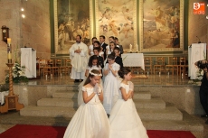 Un total de diez niñas y cuatro niñas han llenado este domingo de alegría las calles de Vitigudino. De la mano de sus catequistas han tomado su Primera Comunión en la iglesia de San Nicolás, ceremonia que como suele ser habitual llenó de público el templo. Para el próximo día 31 está prevista la Comunión del segundo grupo que ha venido recibiendo catequesis a lo largo del curso.