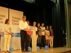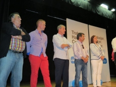 La comitiva paseó por la localidad y acompañó a Julián Barrera y al resto de integrantes de la lista en el salón de actos municipal.