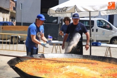 Vecinos y amigos de Villamayor se han reunido este lunes en torno a un buen plato de paella para disfrutar de la jornada festiva. Recta final de las fiestas patronales en honor a la Virgen de los Remedios en la que, como es tradición, no ha faltado la comida popular, un encuentro además solidario. Por cada plato o ración los asistentes han depositado un euro a favor del Banco de Alimentos.