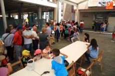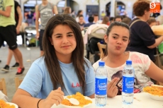 Vecinos y amigos degustan un buen plato de paella solidaria