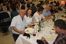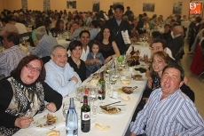 Acomodados en distintas mesas corridas, mayores, jóvenes y niños disfrutaron de un ágape en el que no faltó el embutido local ni un buen chuletón, entre otras viandas regadas con el vino de la tierra, además de agua y refrescos.