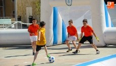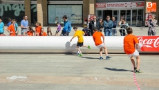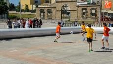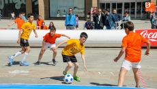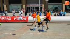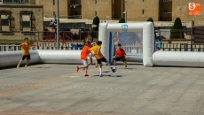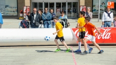 La plaza de la Concordia ha sido escenario de la primera edición del Torneo Soccer Street de Salamanca, organizado por El Corte Inglés y el Club Deportivo Salamanca Fútbol Sala con la colaboración del Ayuntamiento, Coca Cola y FutSal. Un espectacular evento dirigido al deporte infantil que seguirá hasta el domingo con el fin de trasladar la pista de juego a la calle con un formato más rápido, dinámico y espectacular en el que participan los niños de Salamanca. En esta modalidad hay tres jugadores de cada equipo en la cancha (dos de campo y un portero) y se juega en una novedosa pista periférica confeccionada en material de PVC, cuyas dimensiones son de 20x10 metros, con porterías de 2x2 metros. Esta primera edición cuenta con tres categorías; Benjamín, Alevín e Infantil. El número de equipos participantes para este año es de 24 con 200 niños.