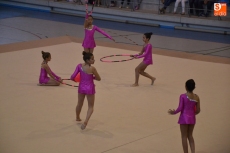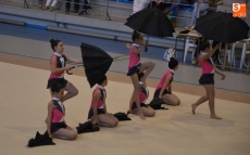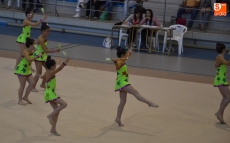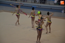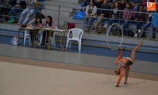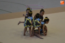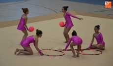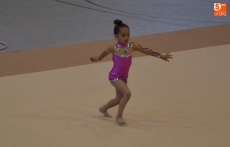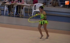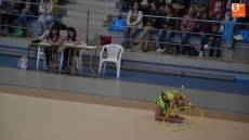 En el citado pabellón se dieron cita gimnastas llegadas de toda la provincia que, perfectamente ataviadas, y con diversos aparatos (aro, cintas, mazas, o pelotas) o en la modalidad de manos libres) dieron lo mejor de sí delante de numerosos familiares y amigos, que las aplaudieron a rabiar.