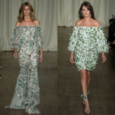Marchesa, con espectaculares vestidos florales; DelPozo, con creaciones voluminosas; y Balenciaga, con diseños en tonos neutrales; tres firmas que han apostado por enseñar los hombros con la máxima de Insinuar, sin enseñar.