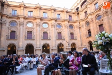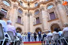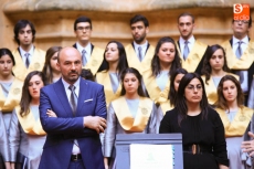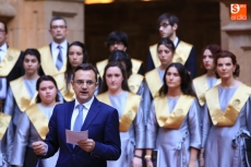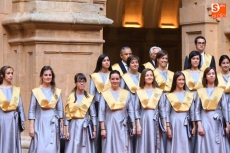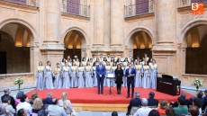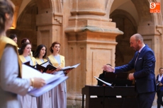 El coro Tomás Luis de Victoria de la Universidad Pontificia de Salamanca ha ofrecido un concierto conmemorativo del 75 aniversario de la Restauración, en el Patio Barroco de la institución académica.