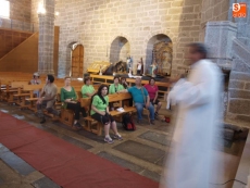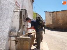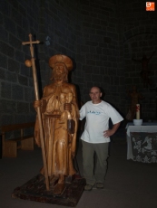 Tras saciar la sed en la fuente de Peña Lavandera se emprendió quizá el tramo más duro por el cordel hacia lo alto del Guijo de Ávila, municipio que en su día apoyó a Juana la Beltraneja y que pagó las consecuencias de su ira con el derribo del catillo y la conclusión de la iglesia con más pobreza que en su inicio, sin fondos suficientes, pero que hoy cuenta con un retablo de Martínez de la Quintana y un Santiago Matamoros que está a punto de venirse abajo, a falta de una importante restauración. El párroco, Amable García y la alcaldesa, María José Herrero lo tienen en cuenta y no paran de llamar a las puertas del obispado de Salamanca, la Junta y Diputación para que se ponga en valor este importante monumento como hito de la Rruta Jacobea de Gredos. Allí tuvo lugar la comida en el local municipal que regentan Rocío y su marido, ex jugador de fútbol, senegalés que son dos maravillosos anfitriones de peregrinos.