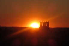 Cruz que antes de moverla unos metros, debido al arreglo de la carretera, estaba perfectamente alineada con la Iglesia y la salida del Alba. Sentado sobre los escalones, siento que ahora está desubicada, desplazada de su lugar original y espiritual, olvidada como tantas cosas en esta villa. Desde sus escalones antes veías el pueblo, alcanzabas a ver las tierras hasta el vecino Portugal y contemplabas las bonitas puestas de sol que se dan en Guadramiro por su situación estratégica. Las estrellas en las largas noches de verano?