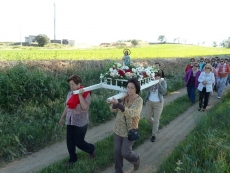 El desfile con la imagen de la Virgen alcanzó la fuente de Alba, casi un kilómetro desde el pueblo, donde las mujeres rezaron el rosario. Al llegar a este paraje dieron lectura a poesías y a diferentes rogativas. Con devoción, regresaron a la iglesia para celebrar una novena.