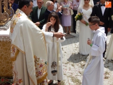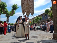 Olor a tomillo, incienso y pétalos de rosa. Acompañados por el sonido de la gaita y el tamboril, las puertas de la iglesia de Santa María La Mayor de Ledesma se abrían para dar paso, tras la celebración de la Eucaristía, a los estandartes y la cruz alzada. El inicio de la procesión reunía en la Plaza Mayor a vecinos y fieles para recorrer las engalanadas calles de la villa, tapizadas con alfombras de tomillo y rosas para ser bendecidas al paso del Santísimo Cristo, escoltado por la corte de honor de las fiestas del Corpus -reina, damas (ataviadas con mantillas blanca y negra) y acompañantes-, y los niños y niñas que recibirán este año la Primera Comunión.
