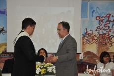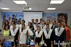A continuación los nuevos graduados recibieron de manos de sus profesores las bandas blancas y una orla como recuerdo de sus compañeros de estudio.