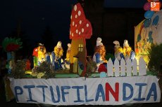 Entre estas últimas, el grupo de majorettes de El Cubo de Don Sancho, que abrían el desfile y que no pararon de bailar al son de la charanga El Bombazo, o la pequeña tribu de guapas 'africanas' que precedía a la charanga. Entre las más elaboradas estaba la diligencia exprés, carroza infantil acompañada de un grupo de temerarios pistoleros, o la versión mini de Grease con los intérpretes más pequeños que nunca haya tenido. También estuvo la 'fiesta del cine' y un remolque de simpáticas cajas de palomitas de maíz. Y además de las primeras, entre los mayores quedaba una representación de damiselas de la Corte de Don Sancho, y Pitufilandia, quizá la carroza de mayor elaboración del desfile. Y cerrando el desfile, un eterno R-5 que trajo a muchos sus recuerdos de juventud.