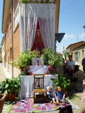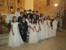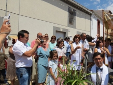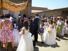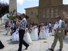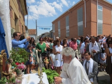 Los 'villorejos' cumplieron con la tradición del Corpus. Todo el pueblo salió a la calle para arropar a los niños de Primera Comunión en su recorrido en procesión por las calles y plazas de Villoria, engalanadas con diez vistosos altares.