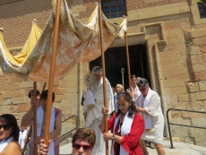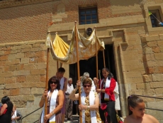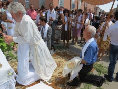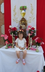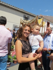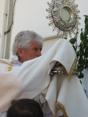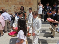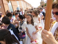 El desfile del Corpus contó con la colaboración de la Cofradía del Santísimo. Ha sido un día muy emotivo para los niños, que lanzaron alegres al cielo los pétalos de rosa.