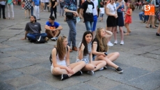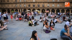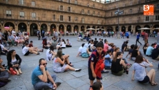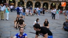La Plaza Mayor fue uno de los escenarios donde la gente se citó para ver la final, gracias a una pantalla gigante que se instaló detrás del escenario donde minutos después se escenificaron dos conciertos programados por el Festivas de las Artes de Castilla y León.