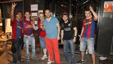 Decenas de 'culés' ven el partido ante la Juventus en una pantalla gigante en la Plaza Mayor (GALERÍA DE FOTOS)