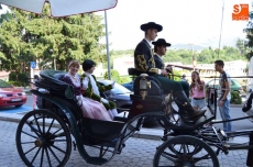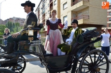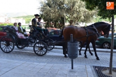 El duque Manuel de Zúñiga recibe en calesa, junto a su comitiva, a la que posteriormente será su esposa, Alberta de Castro, después de que ella regresara de un viaje fuera de estas tierras.