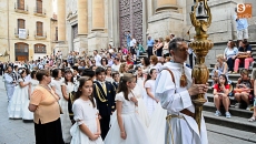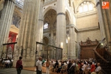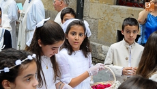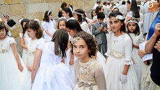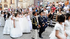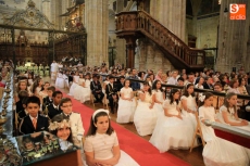 Otras de las curiosidades es que los niños y niñas que han celebrado este año su Primera Comunión tuvieron reservado un sitio privilegiado durante la eucaristía, situándose en los bancos que van del Coro al presbiterio, en el pasillo central de la Catedral Nueva.