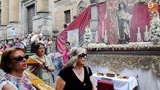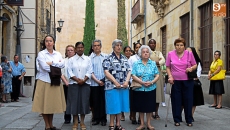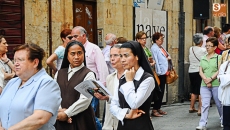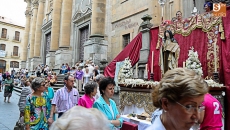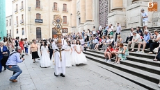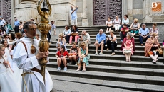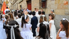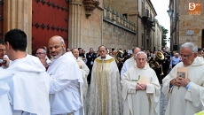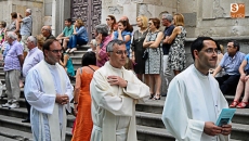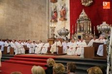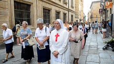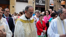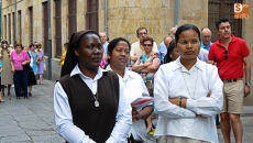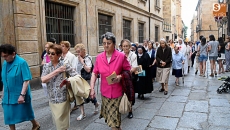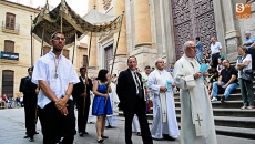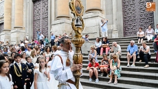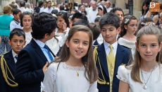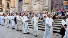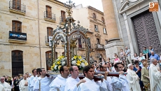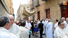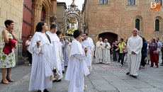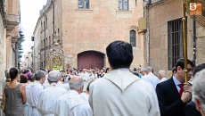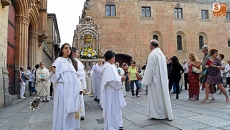 Salamanca celebró por todo lo alto, y con un intenso calor, la solemnidad del Corpus Christi, Día de la Caridad. Cientos de salmantinos salieron a la calle para acompañar al Cuerpo de Cristo en una multitudinaria procesión por las calles céntricas de la capital del Tormes.