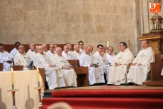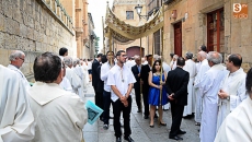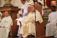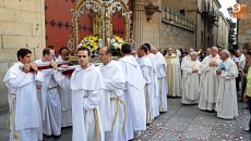 La eucaristía solemne presidida por el Obispo, Carlos López, y concelebrada por el presbiterio diocesano, dio comienzo a las 18 horas en la Catedral Nueva. Al término tuvo lugar la tradicional procesión con el Santísimo por las calles del casco antiguo de la ciudad que este año presentó algunas novedades.