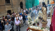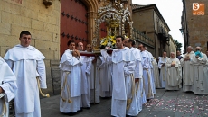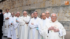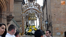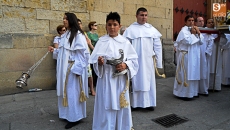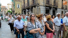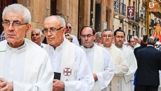 Además, la banda de música de Alba de Tormes acompañó el recorrido procesional. La procesión concluyó en la puerta de Ramos de la Catedral donde estuvo ubicado el último altar que este año adquiere un protagonismo especial y desde donde se impartió la bendición final con el Santísimo.