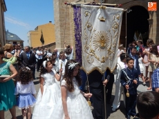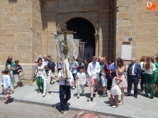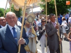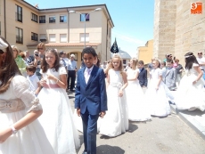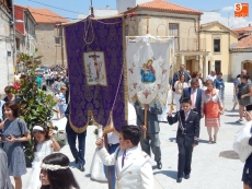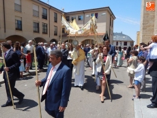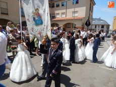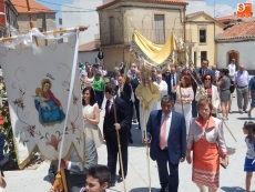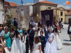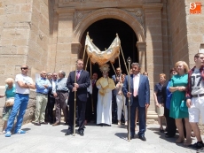 Villares de la Reina ha celebrado el día grande de las Fiestas en honor al Santísimo Sacramento, con los actos religiosos como protagonistas. La alborada charra ha anunciado una jornada que ha reunido a numerosos vecinos y fieles para la celebración de la Santa Misa y posterior procesión por las calles del municipio. Tradición y solemnidad para acompañar al Santísimo que salió de la iglesia bajo palio. Los concejales del Ayuntamiento, siguiendo también la tradición, escoltaron la Custodia hasta el altar donde tuvo lugar la bendición de los niños más pequeños. Comitiva que recorrió las calles encabezada por los niños de Primera Comunión y los mayordomos en uno de los actos más solemnes de las fiestas, y con el acompañamiento de la de la Banda de Música.
