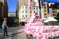 Productores de ajo de Castilla y León y extremeños cumplen con la tradición instalando sus puestos en las calles aledañas a la plaza de Julián Sánchez El Charro.