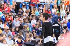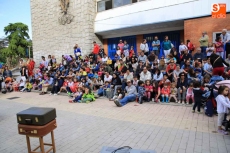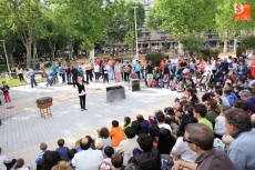 El grupo salmantino Katúa Teatro interpretó esta tarde, a partir de las 19 horas, el cuentacuentos 'Historias para llevar en una maleta', en el parque de La Alamedilla. Se trataba de un espectáculo en el que se mezclaba la narración con los títeres y otros objetos que dan vida a los personajes de viajes literarios.