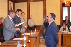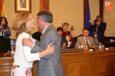 El Alcalde ha tomado posesión del bastón de mando agradeciendo el apoyo recibido, una vez más, por la mayoría de los votantes y en su discurso de investidura ha hecho un resumen de los proyectos de su equipo para los próximos cuatro años, además le ha dirigido unas palabras contestando a la intervención de Javier Garrido, portavoz de Tú Aportas Béjar, recordándole las palabras de Machado "caminante no hay camino, se hace camino al andar", asegurándole que por ahí fuera hay muchas ocurrencias pero muy pocas ideas, y "ahora podrá demostrar por usted mismo esas ideas que trae por ahí". También a Rodríguez Celador ha contestado el Alcalde, antes de leer su discurso de toma de posesión, diciéndole que continúa pensando que debe gobernar la lista más votada y si hiciera falta ir a una segunda vuelta como hacen en Francia, lo pensaba hace ocho años y lo sigue pensando en la actualidad y "así no estaríamos metidos hoy en los líos en los que estamos metidos en otros muchos sitios de España".